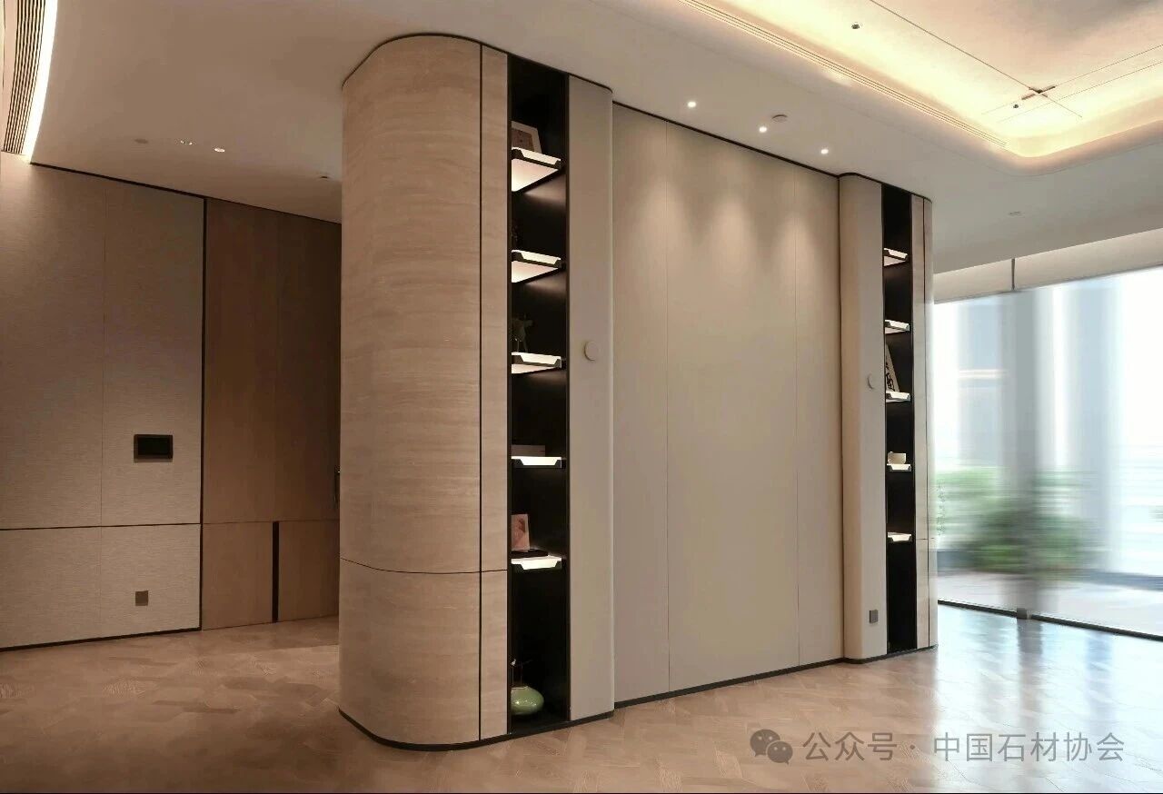 流畅圆润的弧形转角,天然肌理的连贯追纹,是对细节追求的执着与热忱,每一寸石材都承载着科技与艺术交织的诗篇。