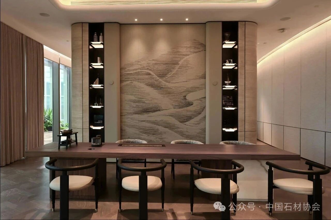 罗马洞石是空间隐形的叙事者,它以独有的孔洞肌理,中和了现代建筑的工业感,让科技、生活与自然保持着温柔的联结。从科技的严谨到人间烟火的松弛,这里的洞石以其温润的质感回馈给每一个人,让用餐不再是简单的饱腹,而是一场自然与匠心的相遇。